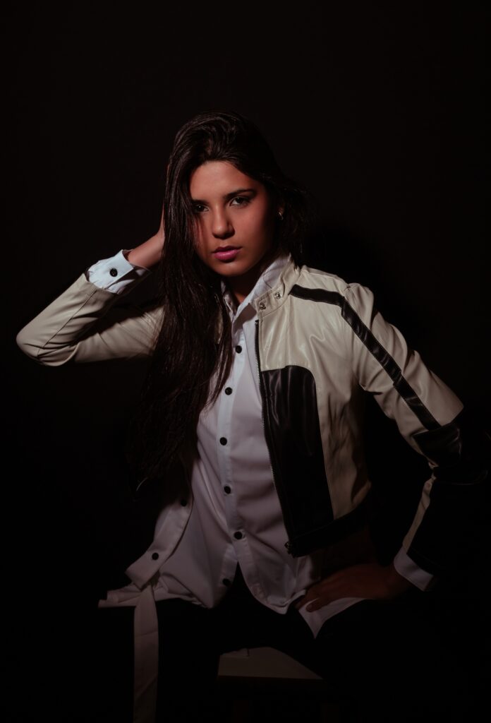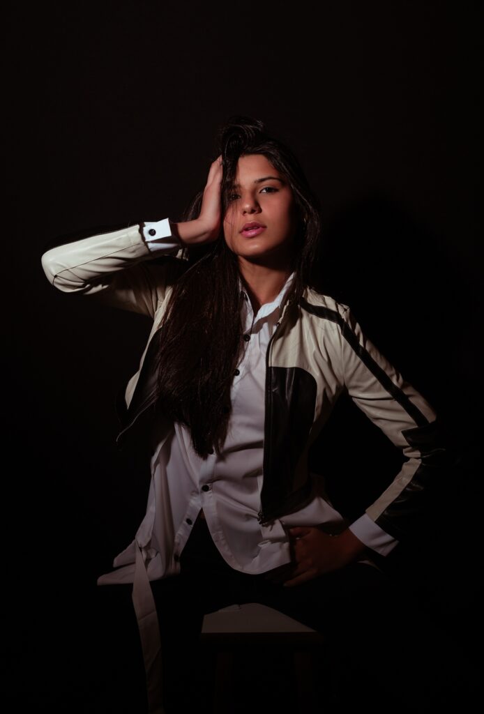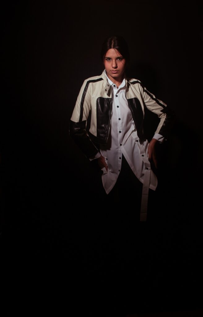 Two photoshoots were scheduled to take place in the same day. We agreed on an urban garment for the studio session so that it would be easier for her to move and pose more confortably. And we picked a long English dress style for the location.